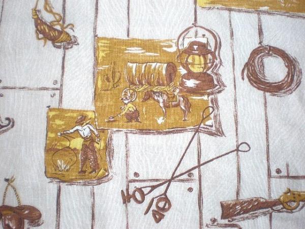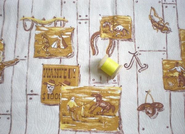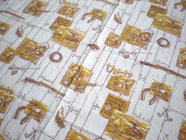 アメリカ西海岸・カリフォルニア州・ロサンゼルスで見つけました・・ウエスタン・カウボーイ柄のヴィンテージ・ファブリック(生地)です。