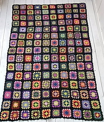 アメリカでみつけました・・ハンドメイドのモチーフ編みアンティーク・ニット・ブランケットです。