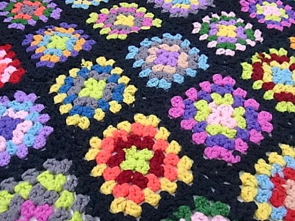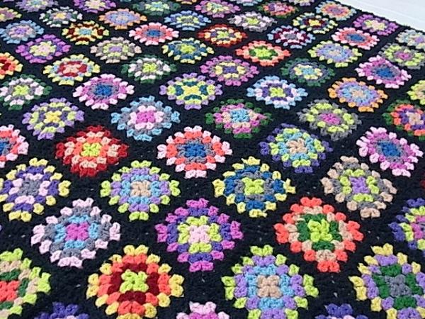 ハンドメイド モチーフ編み・アンティーク・ニット・ブランケット USA