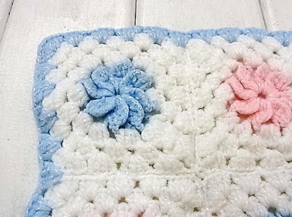 ハンドメイド・お花の立体モチーフ編み・アンティーク・ニット・ブランケット/ひざ掛け USA