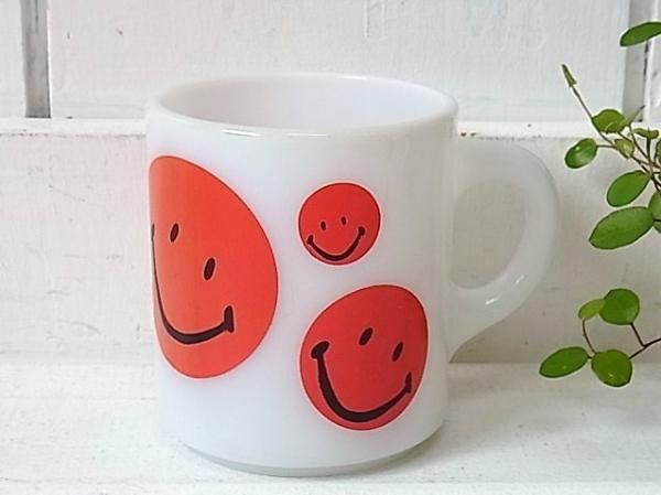 スマイル ヘーゼルアトラス 赤色・スマイリーフェイス・ヴィンテージ・マグカップ・コーヒーカップ