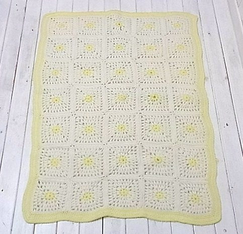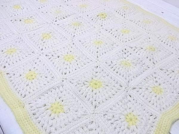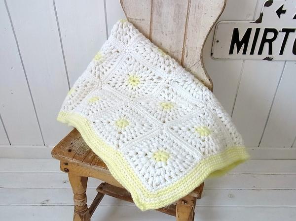 アメリカでみつけました・・ハンドメイドのモチーフ編みヴィンテージ・ニット・ブランケットです。
