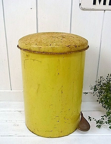 【Sanette】イエロー・ヴィンテージ・ダストボックス/ペダルペール/ごみ箱 USA