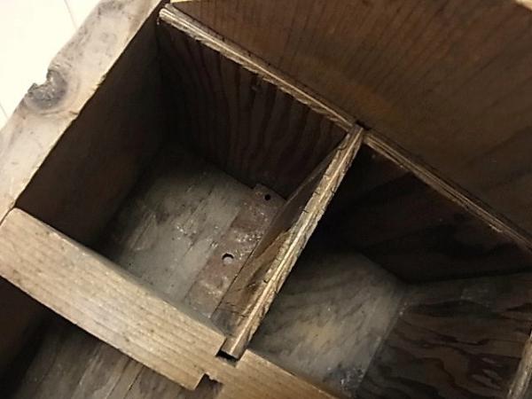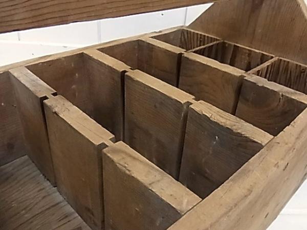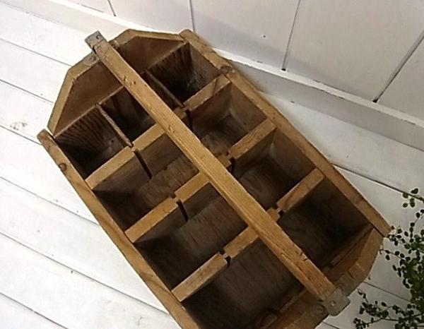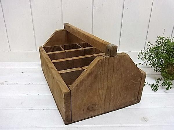 アメリカでみつけました・・古い木製の仕切り付きアンティーク・ツールボックス(木箱)です。