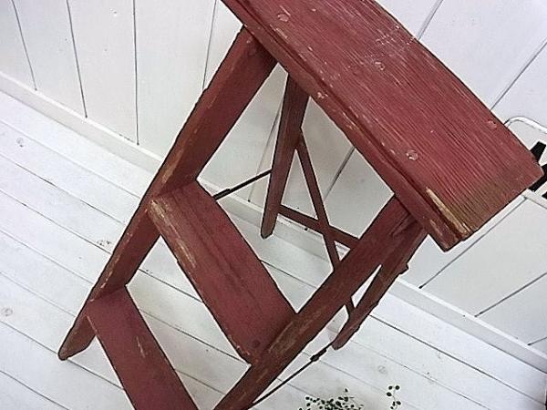アメリカで見つけました・・ミドルサイズの木製アンティーク・ステップラダー(脚立・踏み台)です。