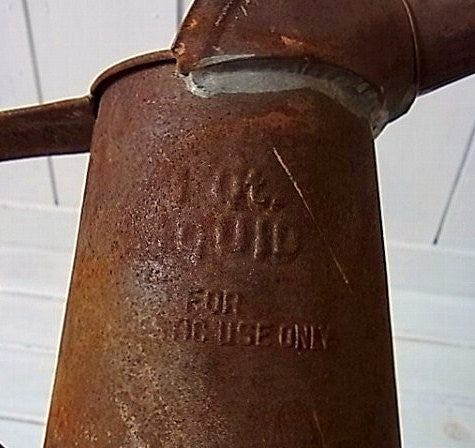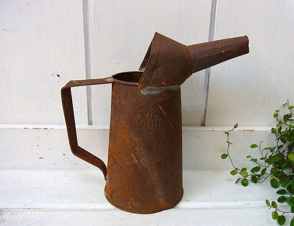 オイルなどのLIQUID(液体)を入れるための容器(1クォート)で、経年で全体にサビがあり、時を経て少し変色し、ジャンクな雰囲気たっぷりです♪