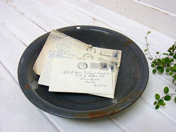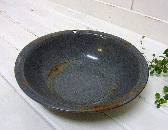 アメリカでみつけました・・ホーロー製のアンティーク洗面器(ボウル)です。