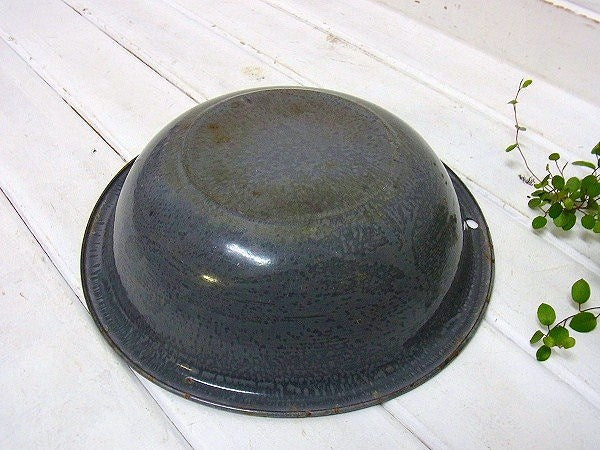 【グレーのマーブル模様】ホーロー製・アンティーク・洗面器・ボウル・USA