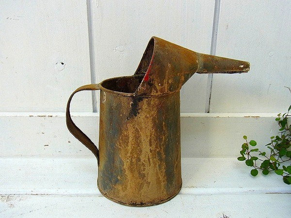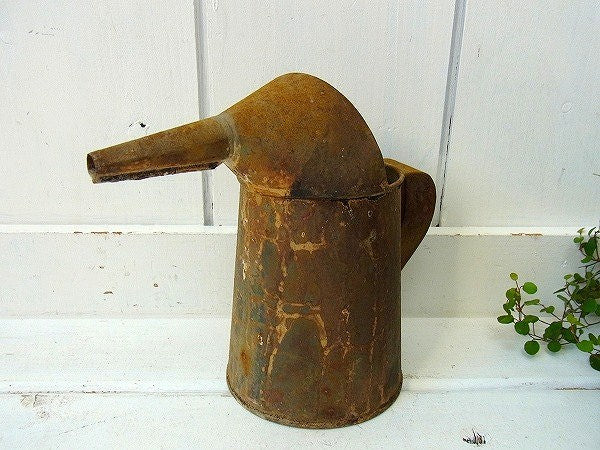 アメリカでみつけました・・ブリキ製の小さなアンティーク・オイルジャグ(液体容器)です。