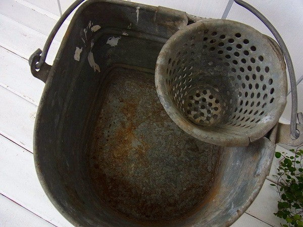 【CONE WRINGER】モップ絞り付き・ヴィンテージ・ブリキバケツ USA