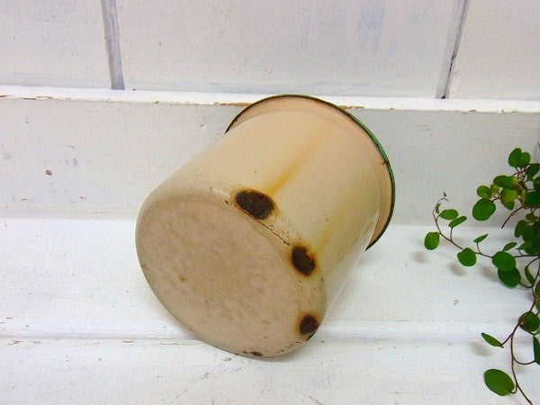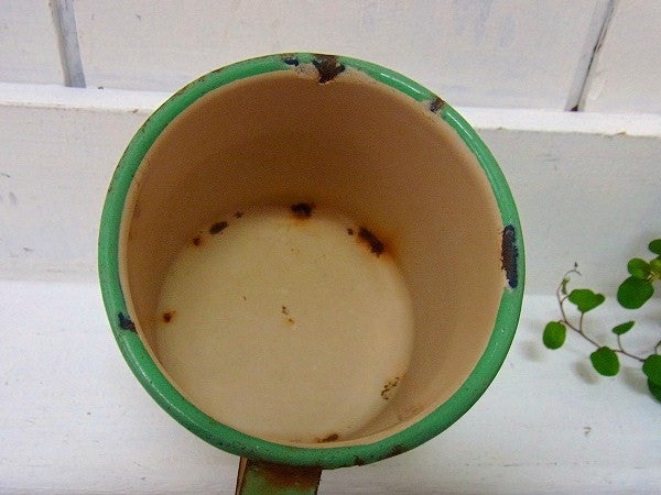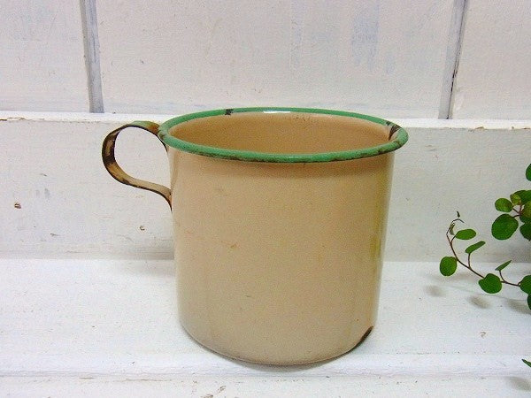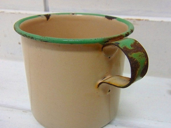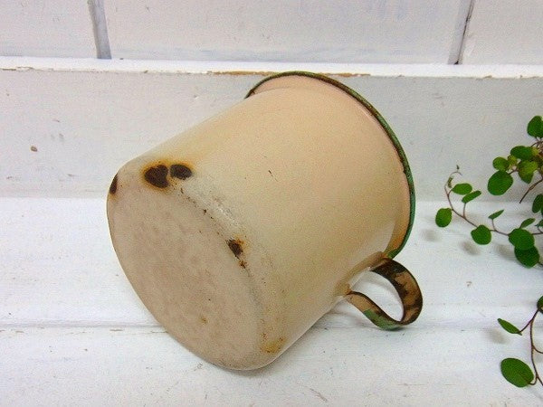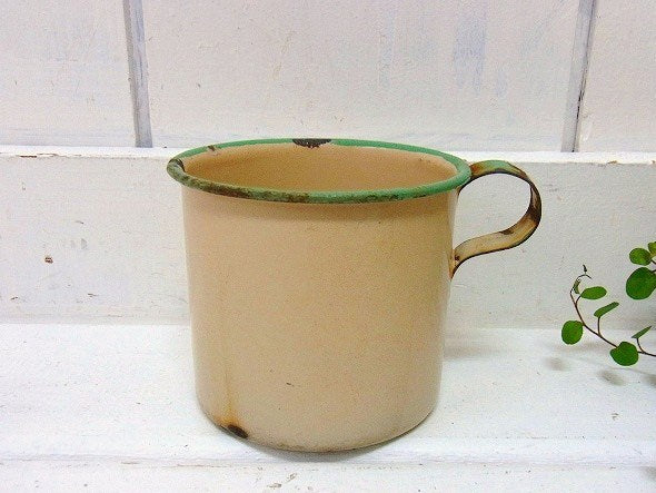 アイボリー×若草色のホーロー製・アンティーク・カップ USA