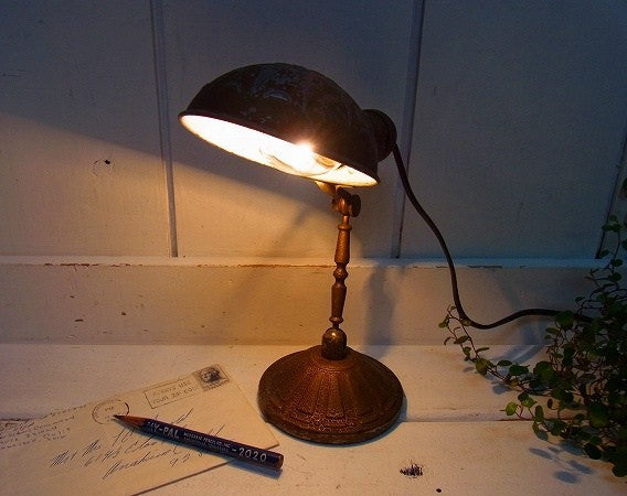 ノスタルジック ゴールドトーン・小さなアンティーク・デスクランプ・照明・テーブルランプ