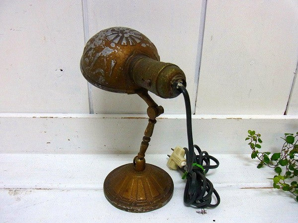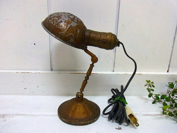 アメリカ西海岸・サンフランシスコで見つけました・・ゴールドトーン・小ぶりなスチール製・アンティーク・デスクランプ(照明)です。