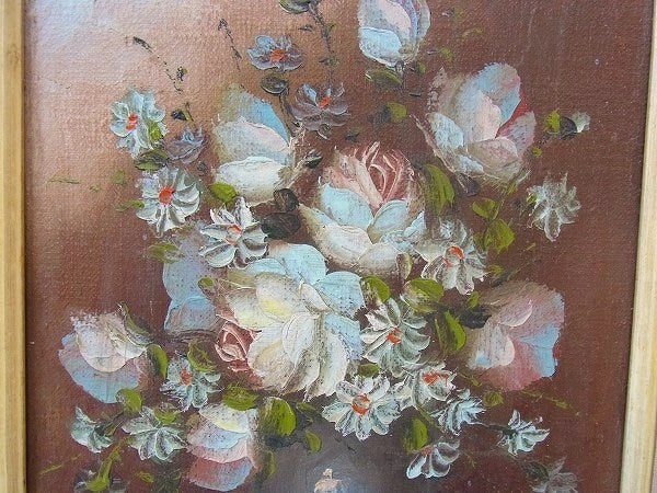 お花の油絵入り・アンティーク・木製フレーム/額縁 USA