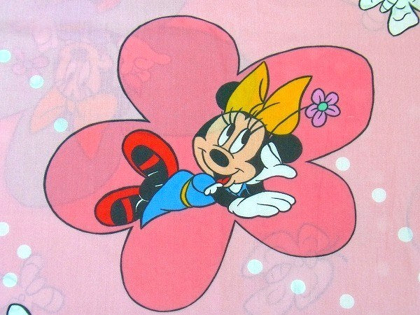 【ミニーマウス】ディズニー・花柄・ユーズドシーツ(フラット) USA
