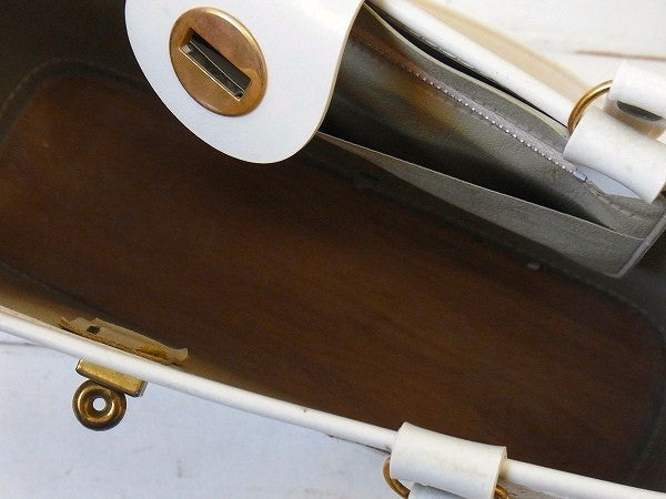 ボトムは木製で、持ち手と留め具部分は白色のビニール製です。