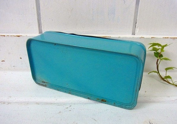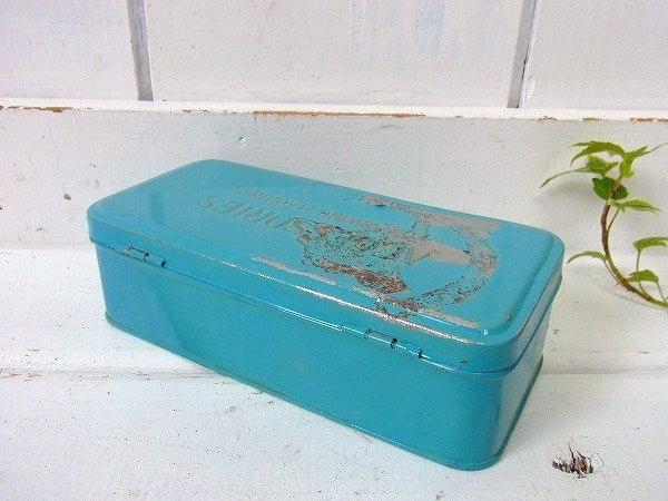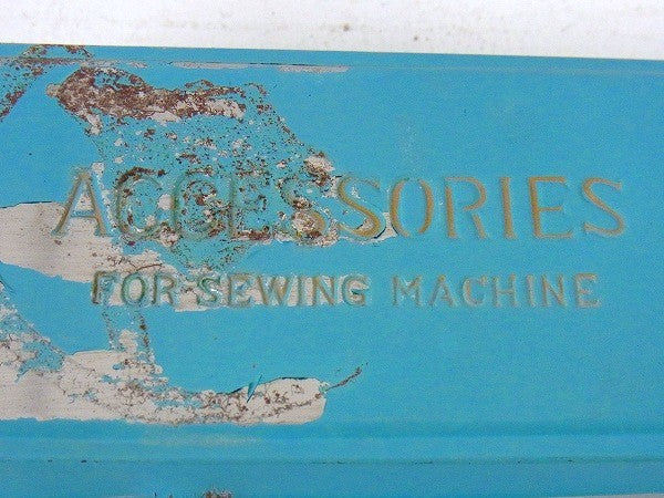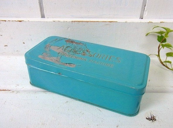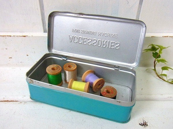 水色のミシン部品用ケース・アンティーク・ティン缶/小物入れ USA