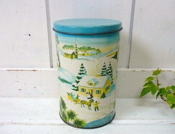 KORDAY アイススケート 冬の街並み・アンティーク・キャンディー缶 ティン缶 USA TIN缶