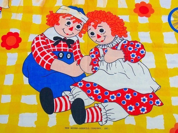 アメリカでみつけました・・・『ラガディアン&アンディ』の黄色チェック柄・ヴィンテージUSEDフラットシーツです。(ツインサイズ)