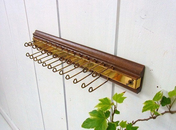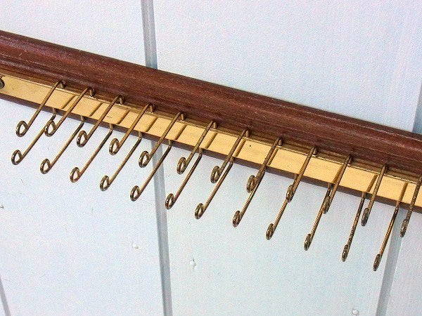 木製×ゴールド色のメタル製で、フックは24個ございます。