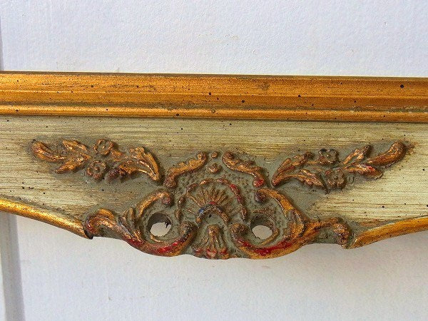 ゴールド色の木製フレームに、樹脂製のクラシカルな装飾が施されております。