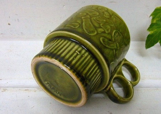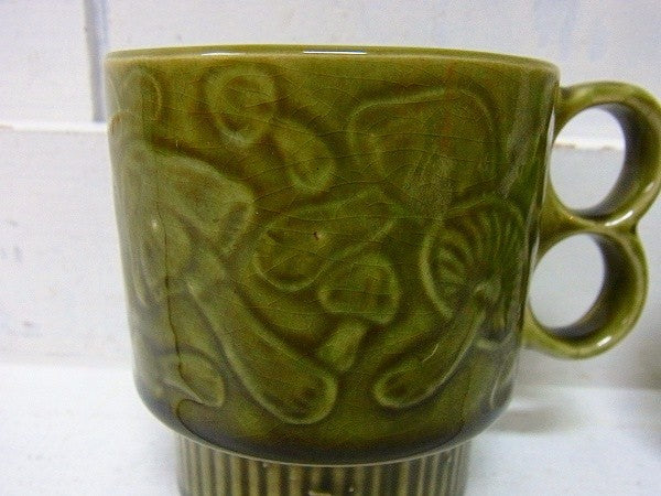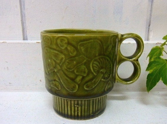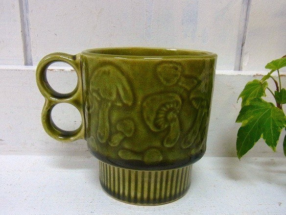 アメリカでみつけました・・きのこ柄の陶器製・ヴィンテージ・スタッキング・マグカップです。