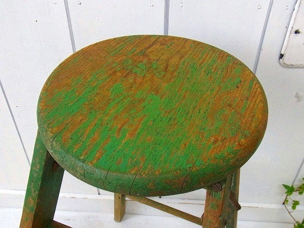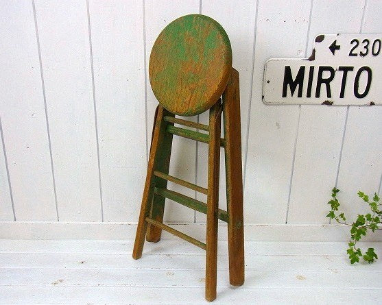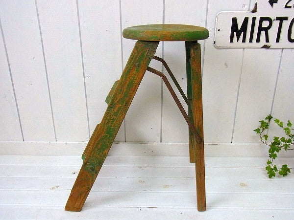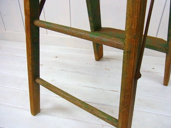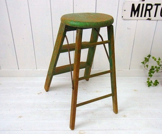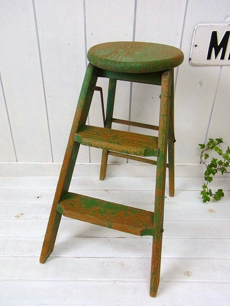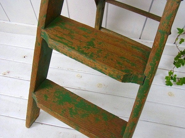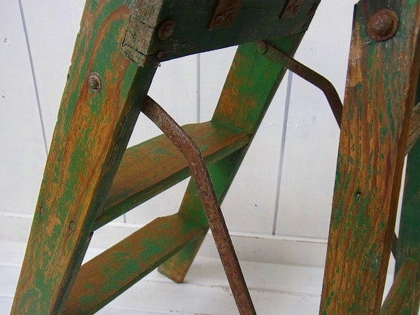 緑色の木製・アンティーク・OLDステップラダー/脚立 USA