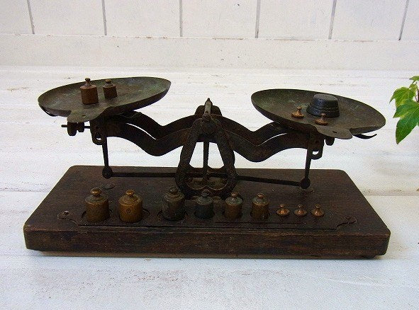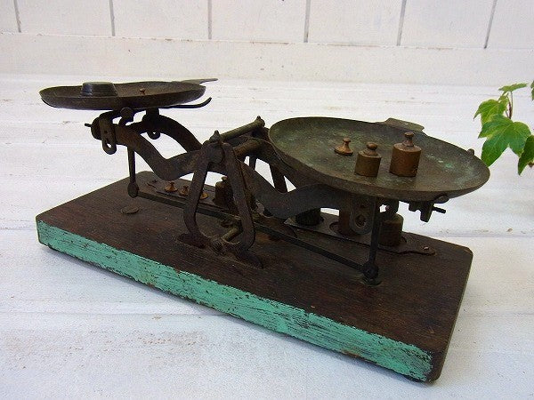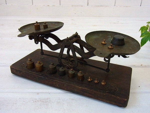 アメリカでみつけました・・・分銅&錘付きのアンティーク・天秤はかり(バランス天秤)です。