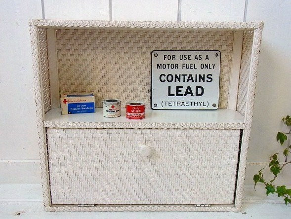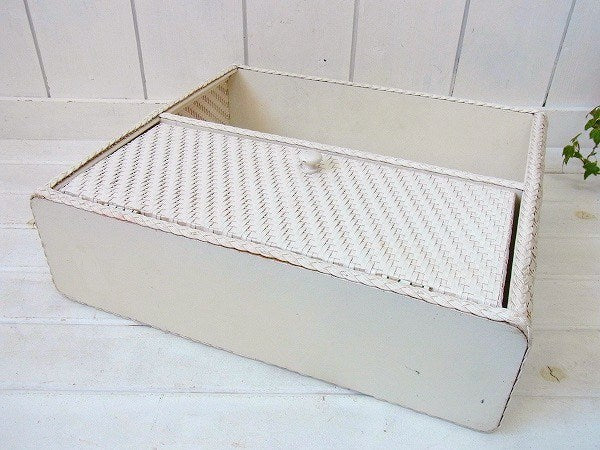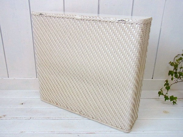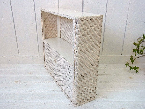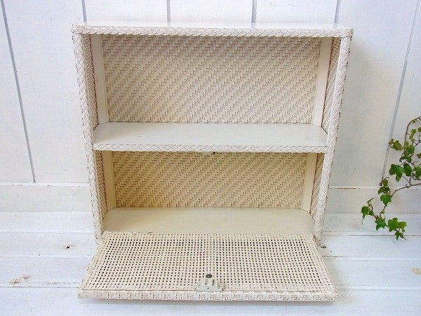 白色・扉付き・アンティーク・ウィッカーシェルフ/飾り棚 USA