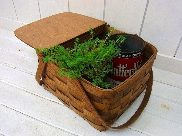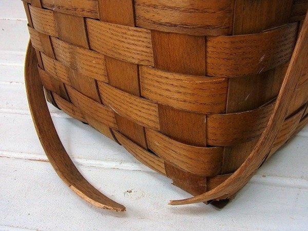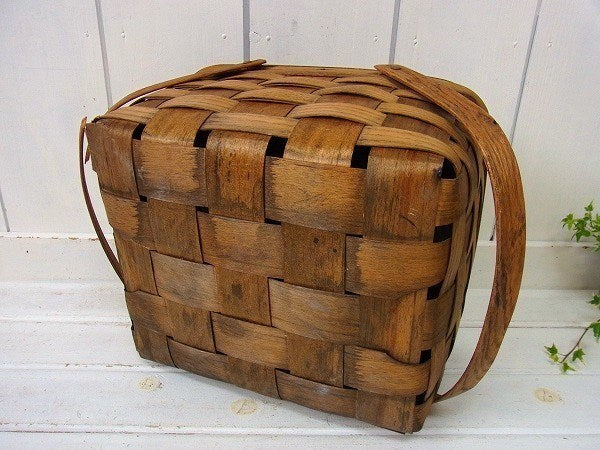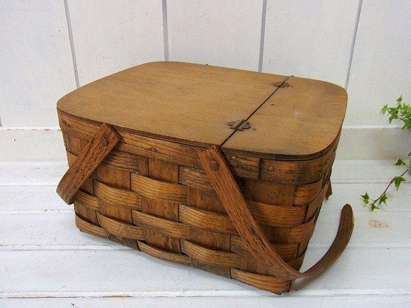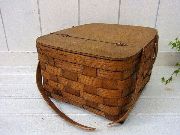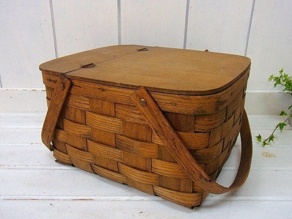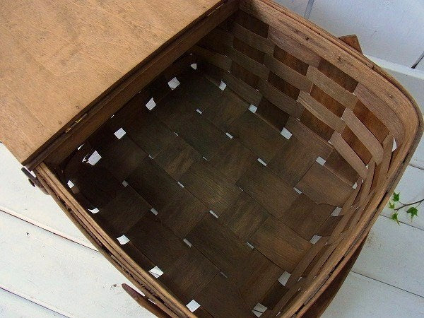 木製・アンティーク・ピクニックバスケット/ウッドバスケット/ダメージあり USA