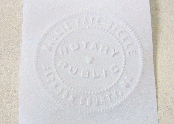 ハンドルを握りますと直径約4cmのエンボスマーク【MOLLIE FAYE STEELE MOTARY PUBLIC JACKSON COUNTY, MO.】とプレスされます。