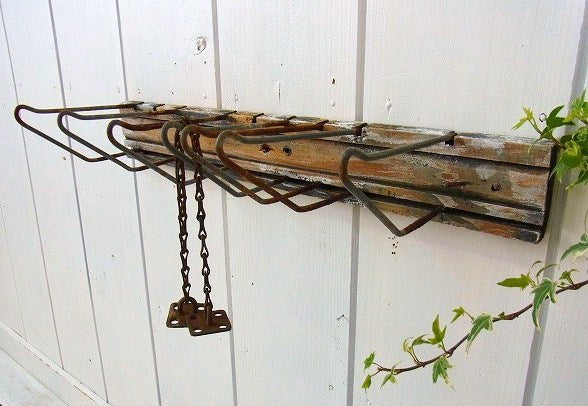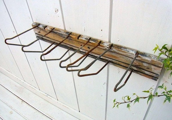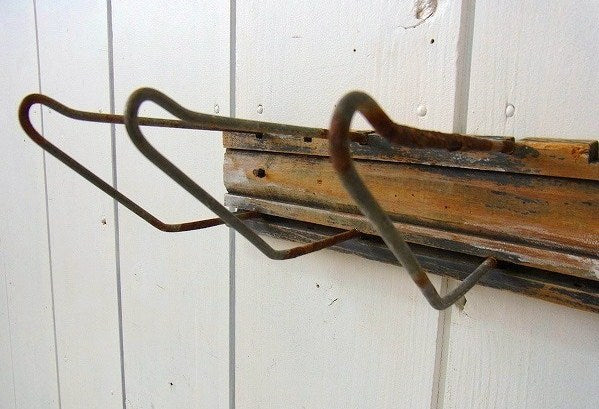 車の修理工場やガレージなどの壁に取り付けて、工具やベルト・ロープ等を掛ける為に使われていたフックです。