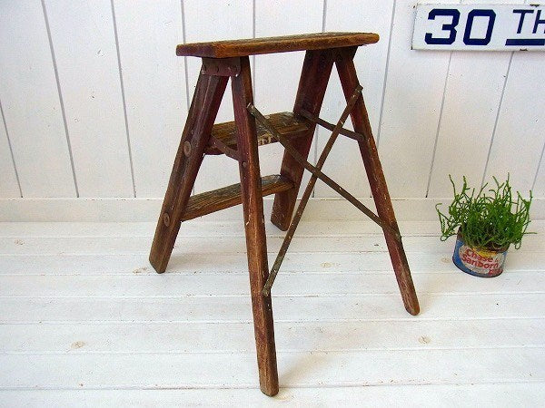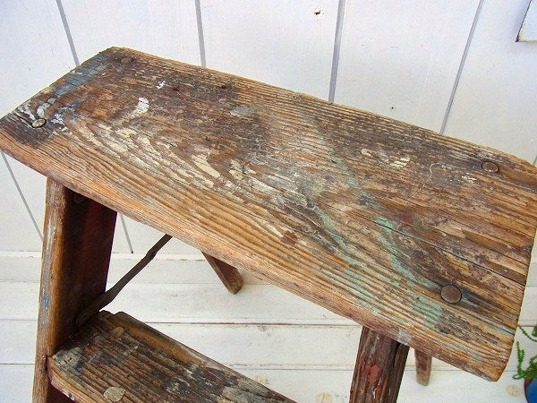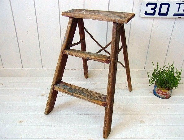 シャビーな木製・アンティーク・ステップラダー/脚立 USA