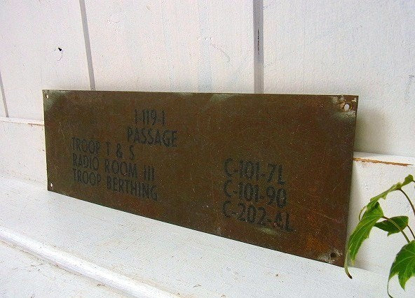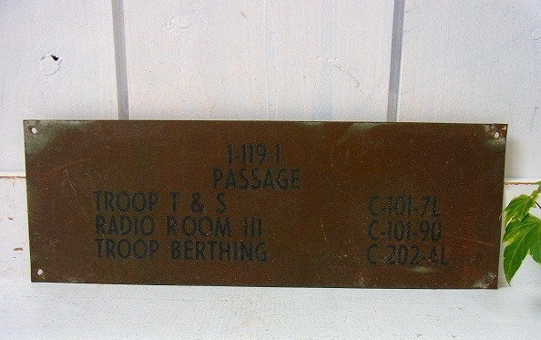 【PASSAGE】無線室・アメリカ海軍・真鍮製・40’sアンティーク・船内プレート/標示プレート
