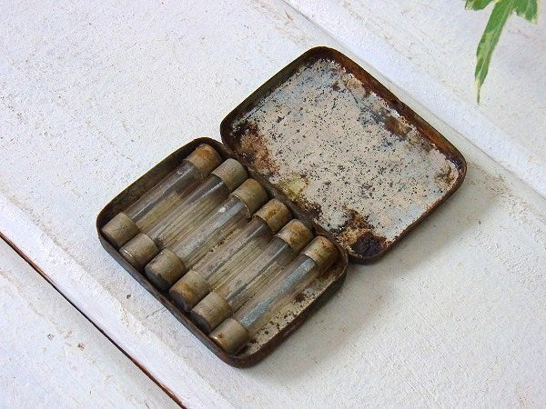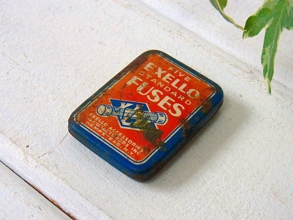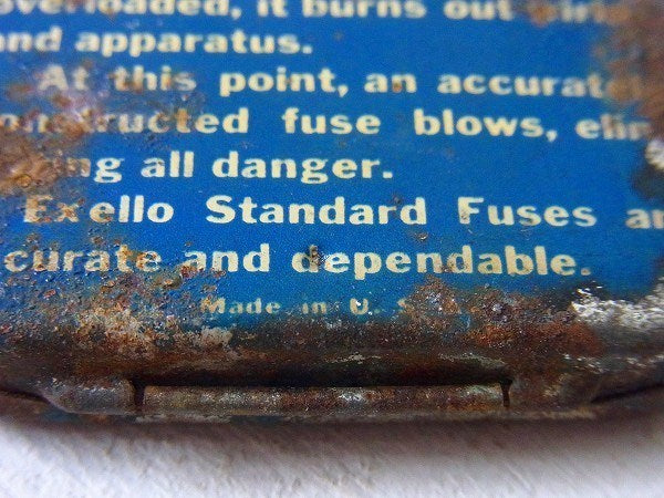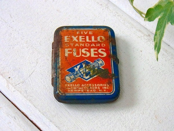 【EXELLO FUSES】ガラス・ヒューズ入り・小さな缶・ビンテージ・ヒューズ缶/ティン缶 USA