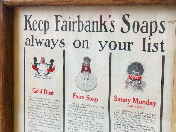 木製フレームに、石鹸ブランド『THE N.K. FAIRBANK COMPANY』の古い広告が入っております。