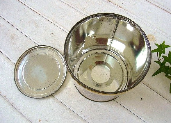 ダイエットのウエイトコントロール用・チョコレートパウダーが入っていた、フタ付きのブリキ缶になります。