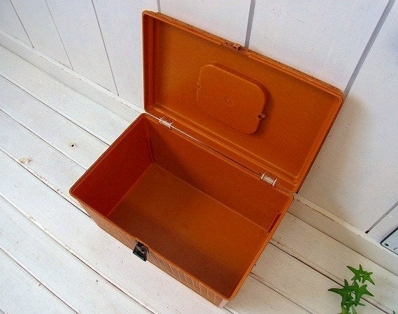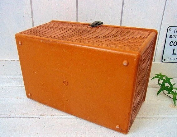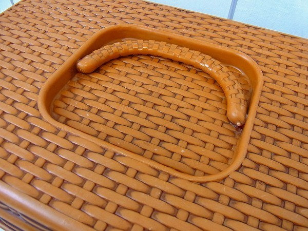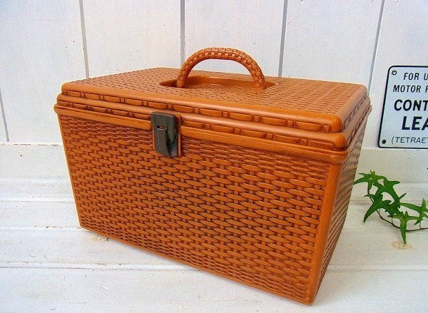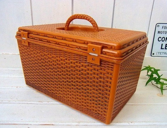 アメリカで見つけました・・『WILSON MFG CO』のバスケット柄・プラスティック製・ヴィンテージ・ソーイングボックス(裁縫箱)です。