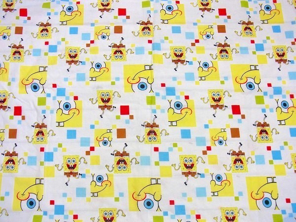 【スポンジボブ】キャラクター生地・ベビーサイズ・ユーズドシーツ(フラット)