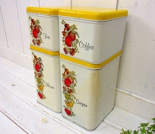 【CHEINCO社】Sugar・ベジタブル柄・ティン製・アンティーク・キャニスター/ティン缶 USA