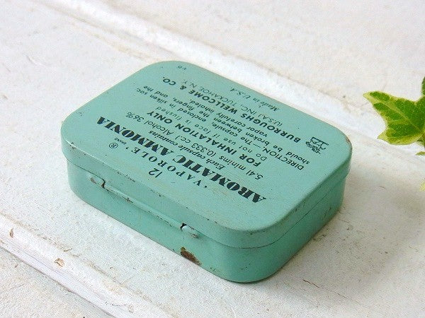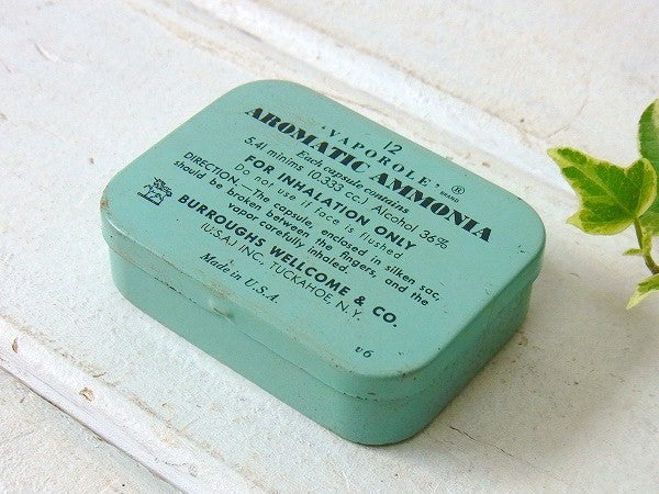 【AROMATIC AMMONIA】ターコイズブルー色の小さなヴィンテージ・ティン缶 USA