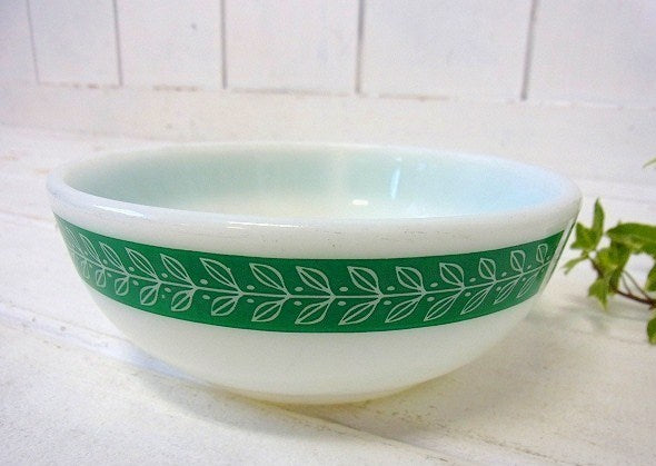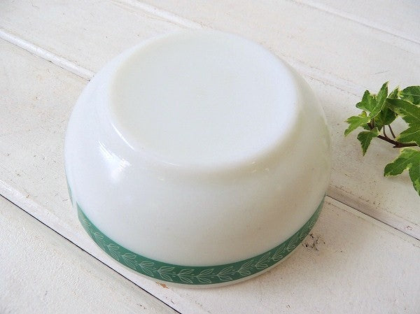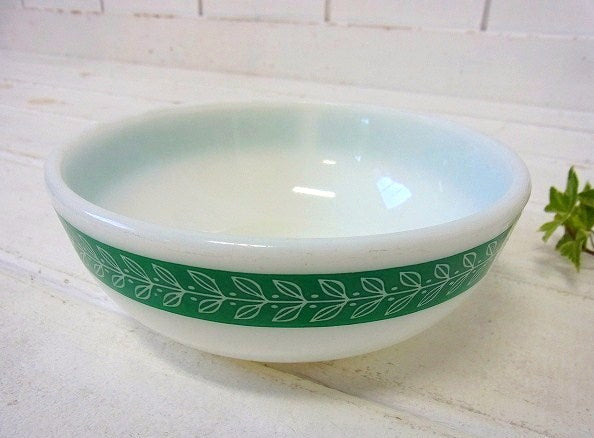 アメリカで見つけました・・パイレックスのグリーン・ローレル柄・シリアルボウルです。