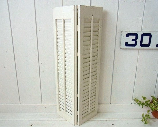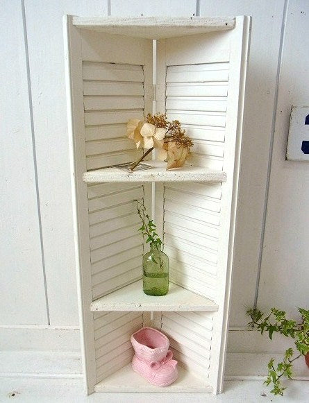アメリカ西海岸・サンフランシスコで見つけました・・白色の木製アンティーク・ルーバーで作られた3段コーナーシェルフ(飾り棚)です。