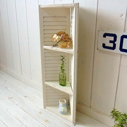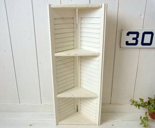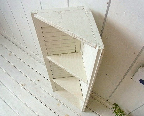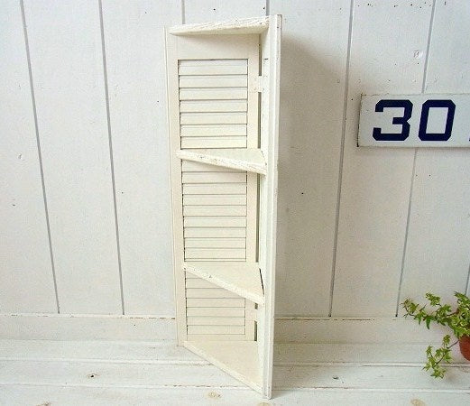 ホワイトトーン US アンティーク・ルーバー・3段・コーナー シェルフ 飾り棚 ① インテリア