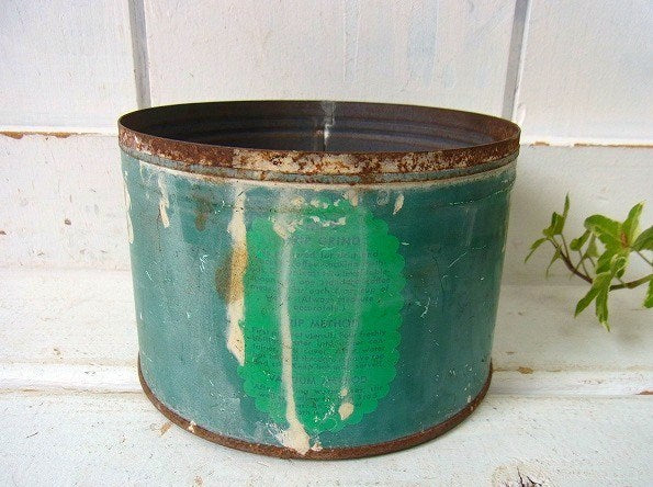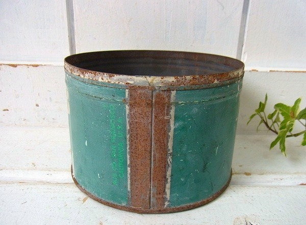 コーヒーが入っていたブリキ缶で、緑色のボディにプリントが入っております。