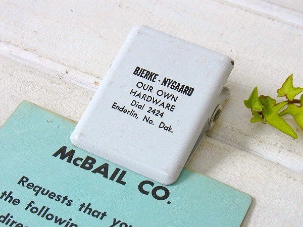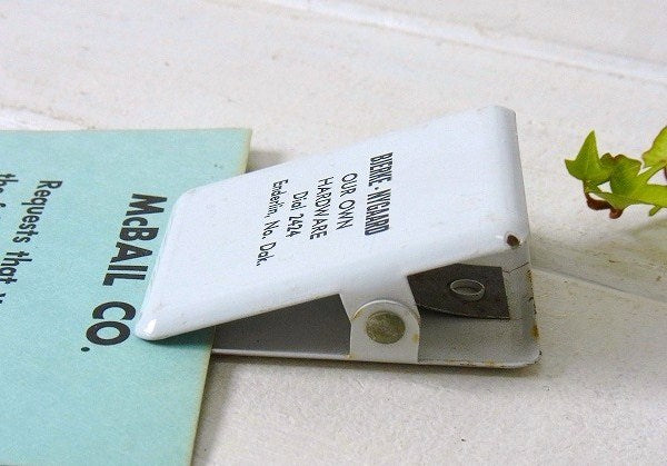 アメリカで見つけました・・白色のスチール製・ノベルティ(販促品)ヴィンテージ・クリップです。