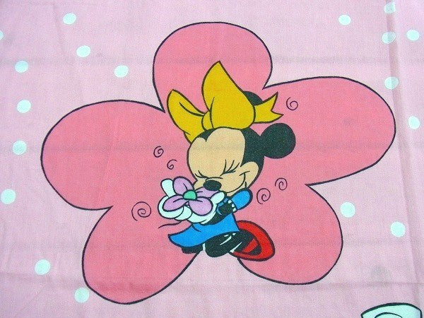 アメリカで見つけました・・ディズニー『ミニーマウス』の花柄・ヴィンテージ・USEDフラットシーツです。(ツインサイズ)