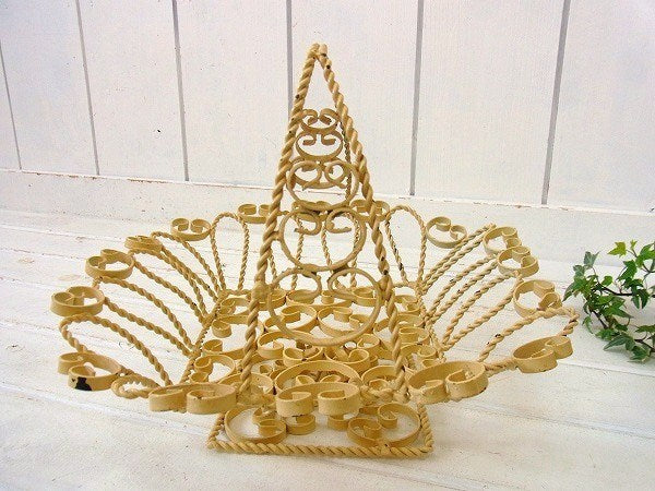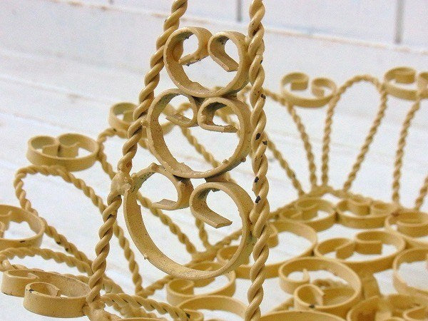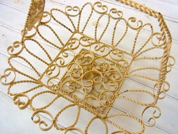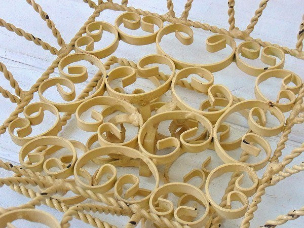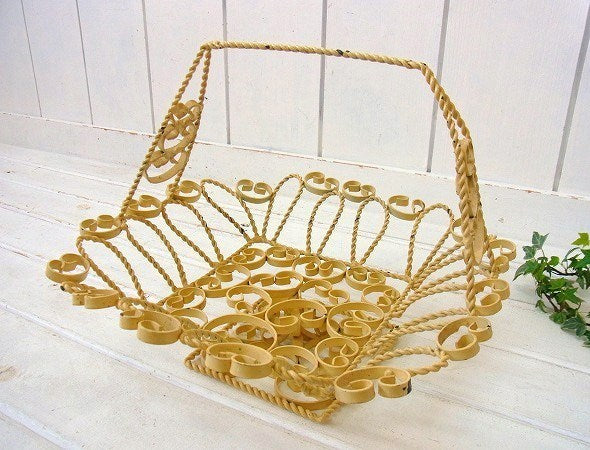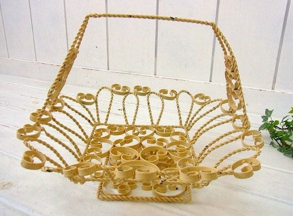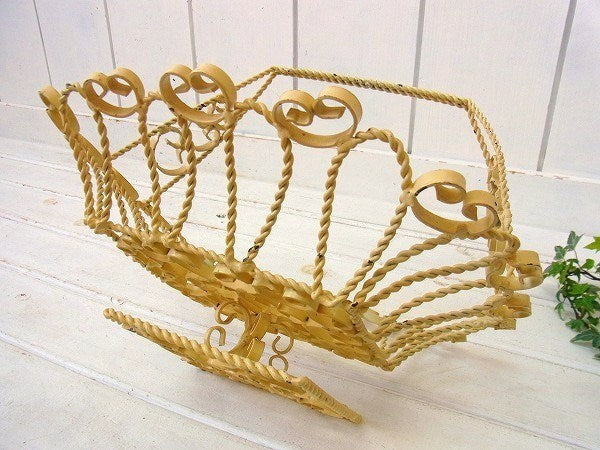 アメリカ西海岸、カリフォルニアで見つけました・・クリーム色のアイアン製・脚付き・アンティーク・バスケット(籠)です。