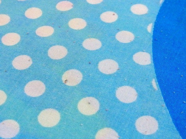 ドット柄ベースにミッキーマウスとミニーマウス・ドナルドタック・デイジーダックがダンスしている可愛いプリントです。