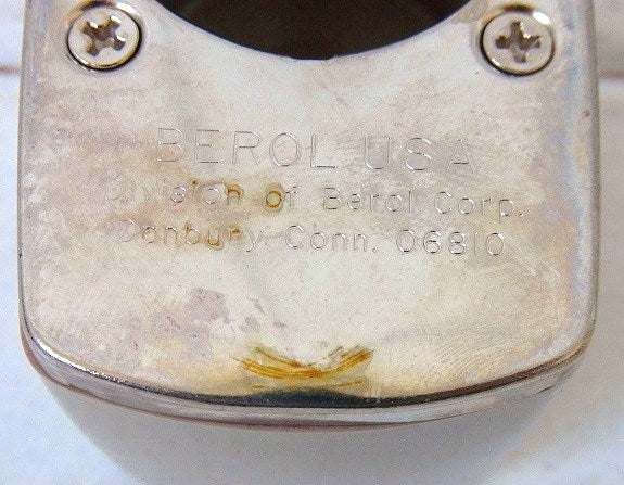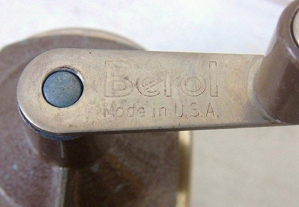 鉛筆挿入口下に【Berol SHARPENER】、カバー内側に【BEROL USA Division of Berol Corp. Danbury Conn. 06810】、ハンドル部分に【Berol Made in U.S.A.】とございます。